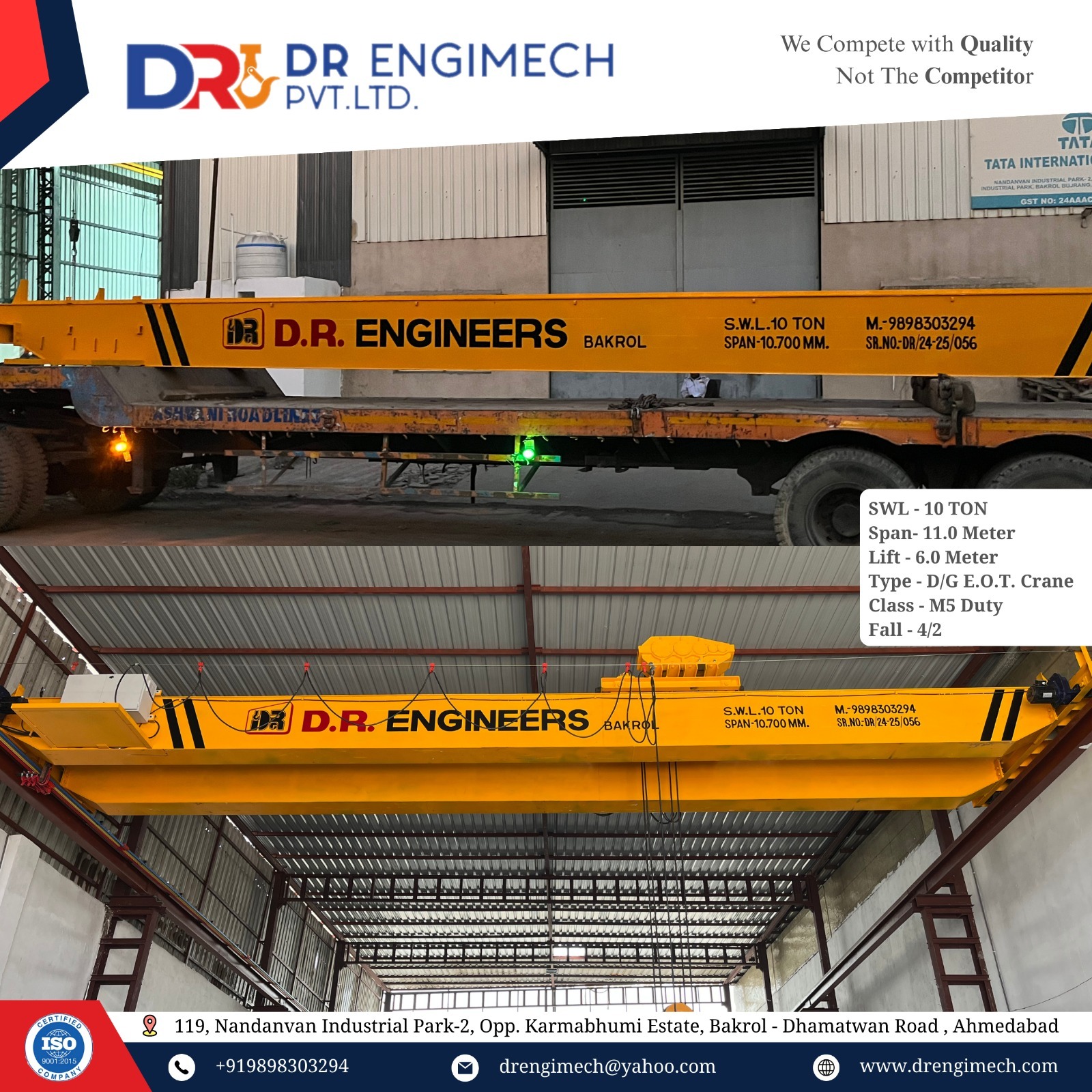 Choose D.R. Engimech Pvt. Ltd. for a 10 Ton Double Girder EOT Crane in Material Shop that delivers strength, precision, safety, and long-term performance for efficient material handling