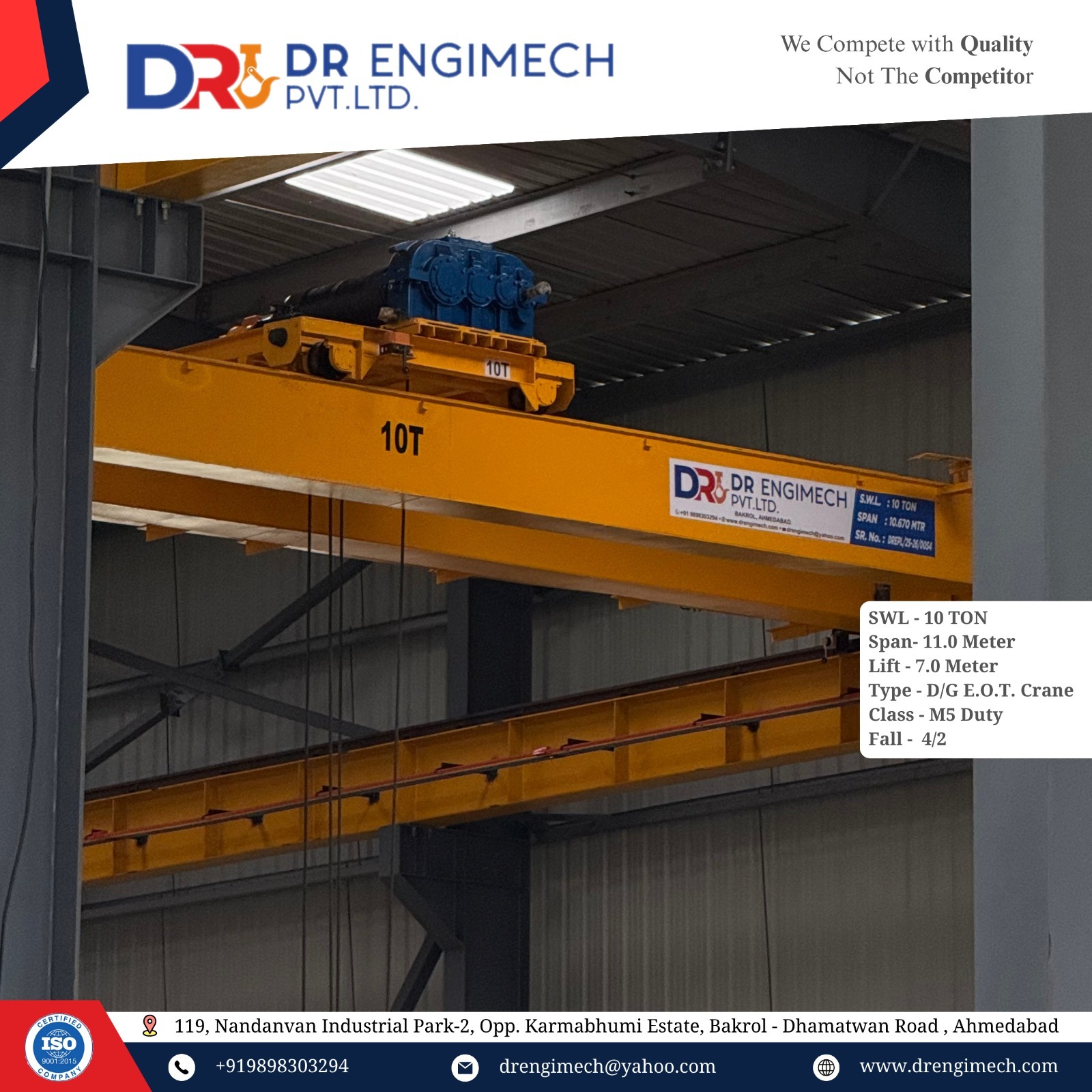 Choose D.R. Engimech Pvt. Ltd. for a 10 Ton Double Girder EOT Crane that delivers precision, safety, durability, and high operational efficiency for demanding industrial applications.