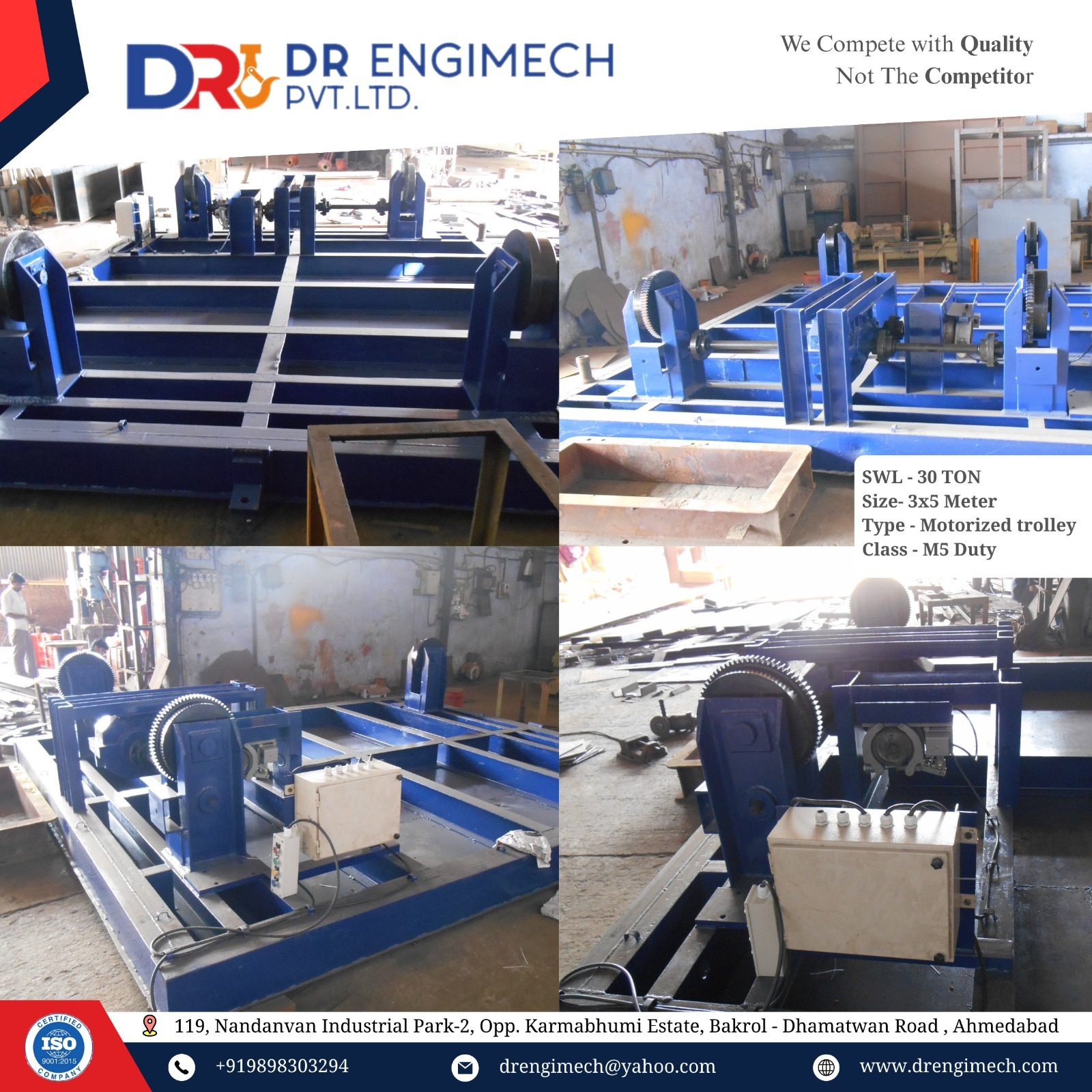 30 ton motorized trolley, furnace motorized trolley, heavy duty industrial trolley, motorized transfer trolley manufacturer, D.R. Engimech trolley, high-capacity trolley