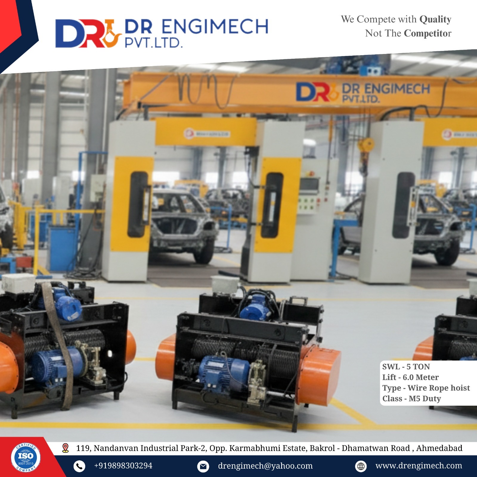 5 ton hoist, best quality hoist, industrial wire rope hoist, heavy duty hoist, EOT crane hoist, premium hoist manufacturer, D.R. Engimech hoist