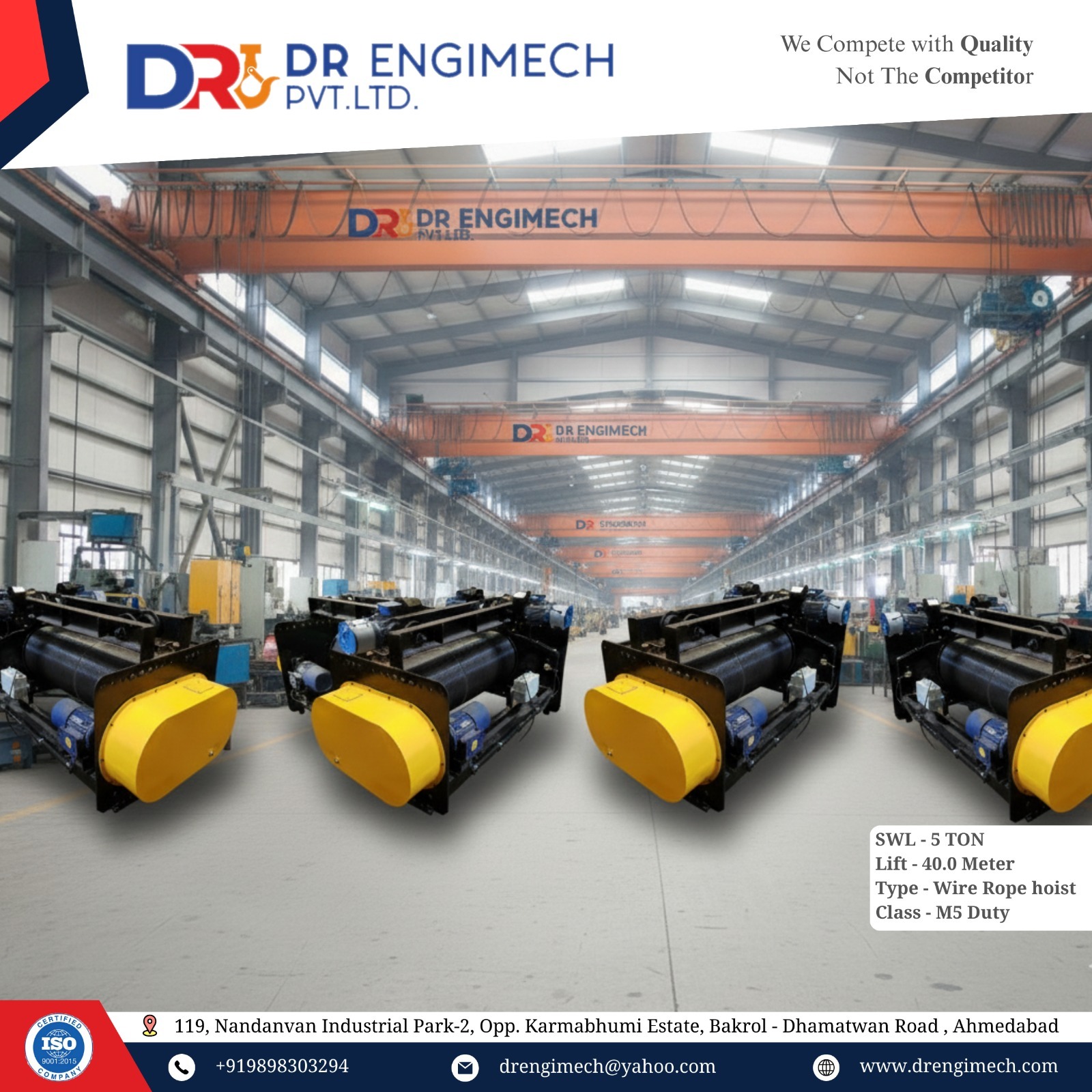 5 ton hoist, premium quality hoist, industrial wire rope hoist, heavy duty hoist, EOT crane hoist, D.R. Engimech hoist