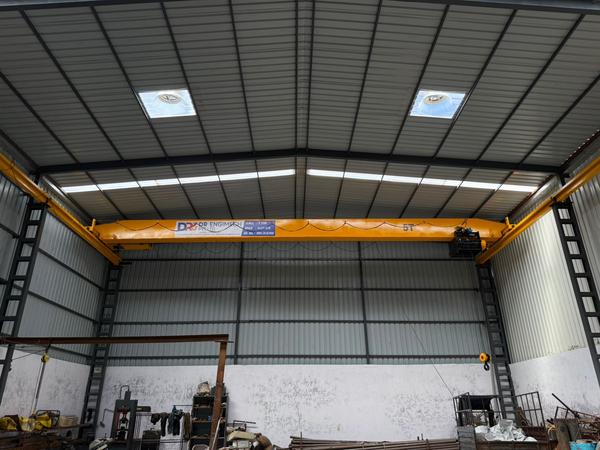 Double Girder EOT CraneA Double Girder EOT (Electric Overhead Travelling) Crane is a heavy-duty overhead lifting system designed with two parallel girders that provide superior strength, stability, and increased lifting height compared to single girder models. Supported by end carriages on both sides, it ensures smooth, safe, and precise load handling across large industrial facilities.These cranes are ideal for manufacturing plants, steel industries, powerhouses, heavy engineering workshops, and large warehouses where high lifting capacities and long spans are required. The robust construction and advanced design allow for high-speed operations, improved hook approach, and maximum utilization of workspace.Each crane is engineered and tested as per IS 3177, IS 807, standards, ensuring durability, reliability, and operator safety.| Parameter               | Details                                                                       || Capacity                   | Up to 150 Ton                                                            || Span                         | Up To - 80 Meters                                                    || Lift Height (HOL)     | Up To - 100 Meters                                                  || Duty Cycle                | M1 to M8 as per IS 3177 /IS 807                           || Optional Features   | Radio Remote Control ,Safety Limit Switches    |